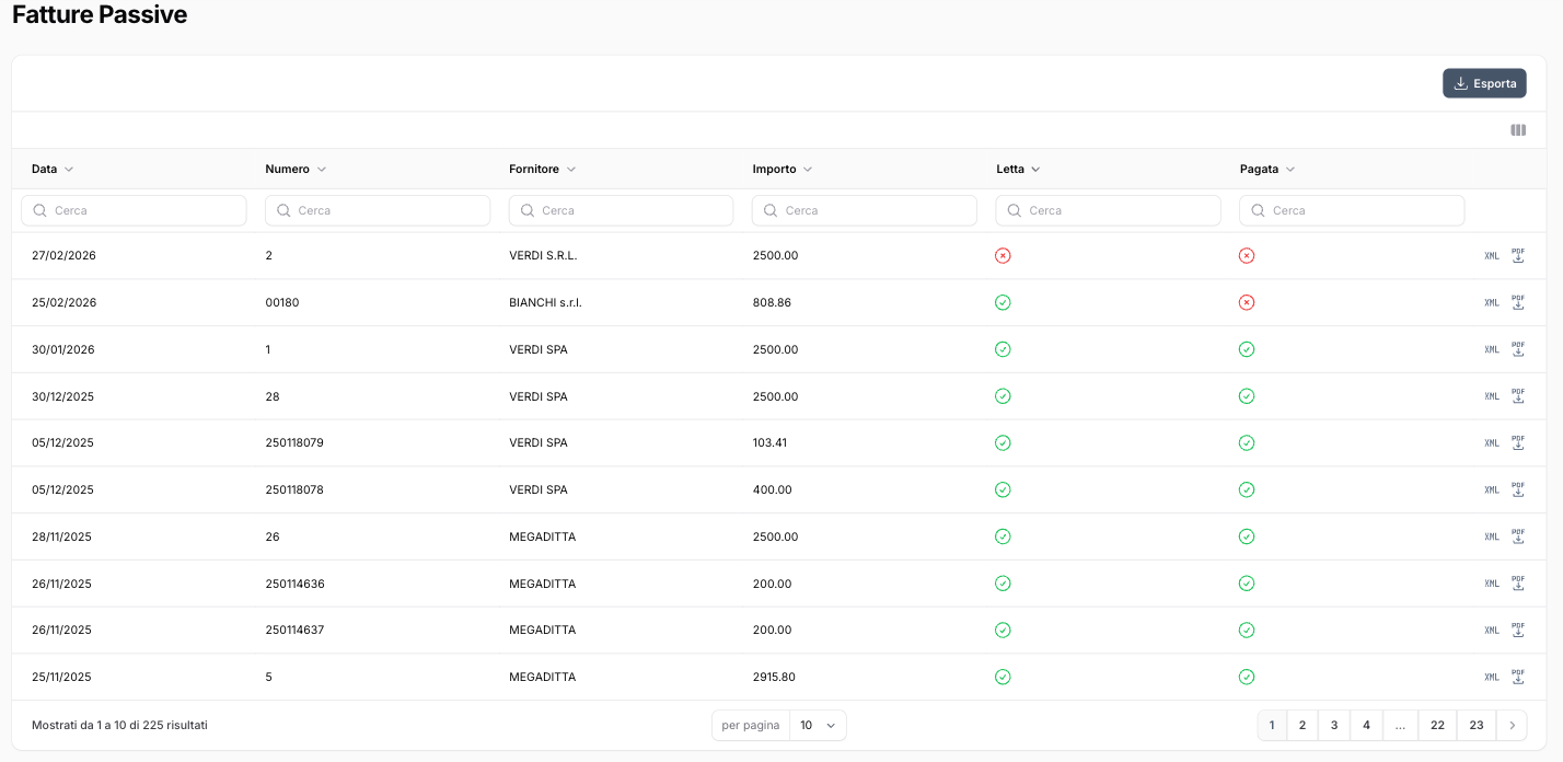 Oltre a consultare le fatture ricevute, puoi anche segnare lo stato dei documenti per mantenere il controllo sui pagamenti.