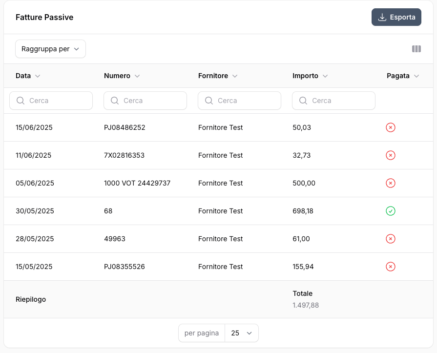 Il report fornitori organizza i dati delle fatture passive per offrirti una visione chiara dei costi della tua attività.