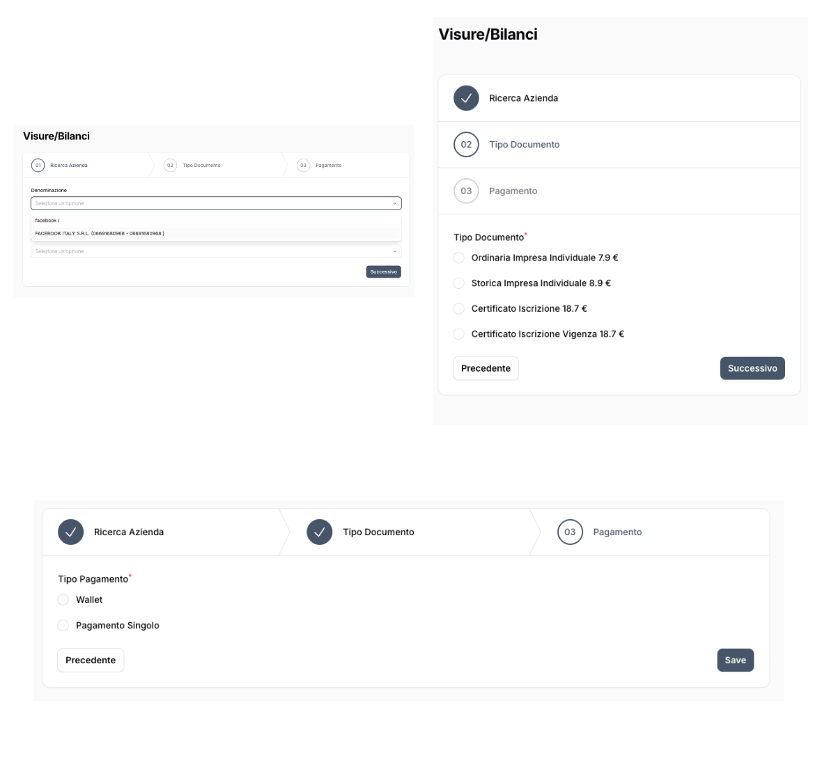 Con Feesbee puoi cercare un’azienda e richiedere documenti ufficiali come visure camerali e bilanci direttamente dalla piattaforma.
