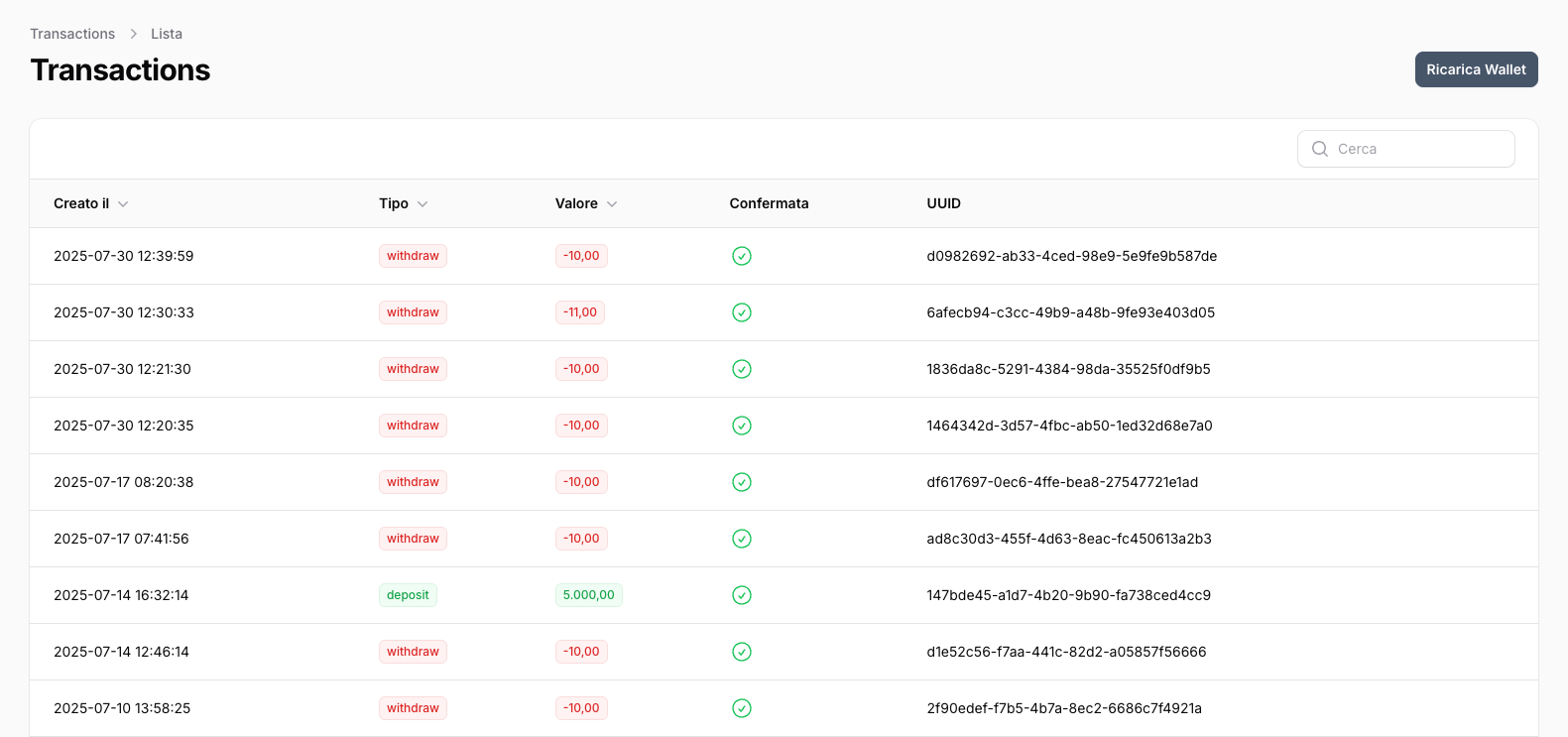 Puoi consultare facilmente le ricariche e gli utilizzi del credito direttamente nella piattaforma.