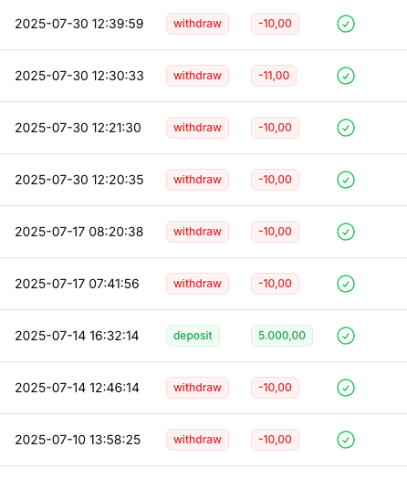 Feesbee mantiene uno storico completo delle operazioni effettuate con il wallet.